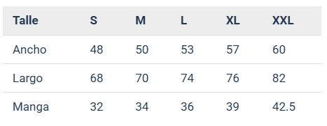 Disponible en tallas S al 2XL